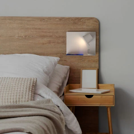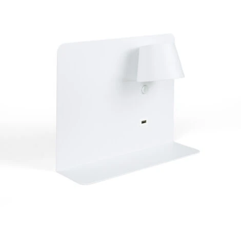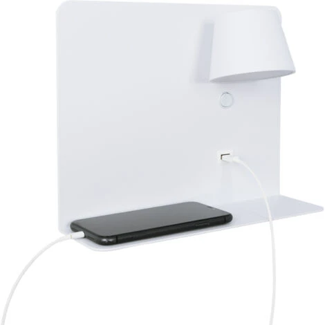 Apliques de pared rotatorios con usb y estantería. Aplique de pared moderno, con interruptor y USB de carga. Con forma rectangular horizontal y una pequeña estantería para colocar cualquier objeto.