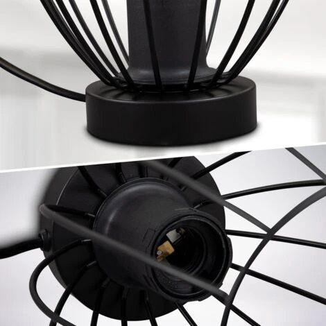 B.K.Licht I Lámpara de sobremesa de cable I E27 I Interruptor de cable I Lámpara de sobremesa vintage de 1 luz con pantalla de metal I Altura 25,6 cm I Negro I sin bombilla.