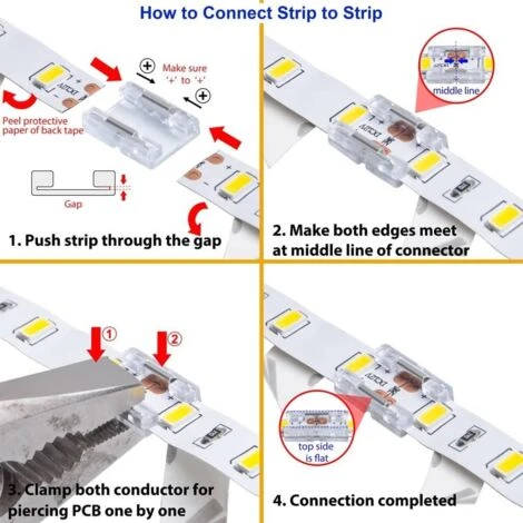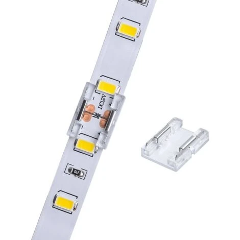 El Conector para Unir Tira LED 10mm logra una conexión rápida y perfecta sin soldaduras para las tiras LED de 10mm Monocolor. Este mismo conector, gracias a su tamaño tan reducido, podremos integrarlo dentro de los perfiles junto con la instalación de las Tiras LED Monocolor.