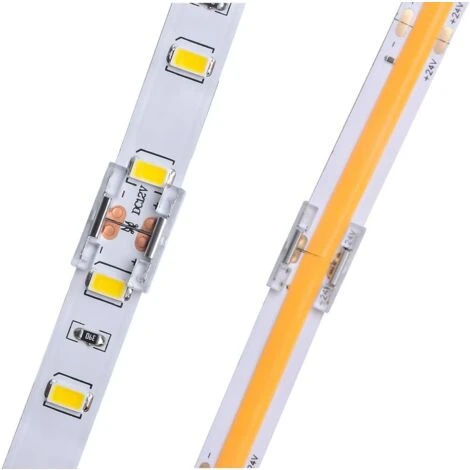 Con el Conector para Unir Tira LED COB 10mm podrá conectar varias tiras LED de 10mm de manera rápida y práctica desde 3V hasta 24V.
