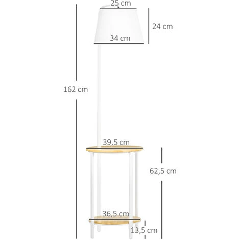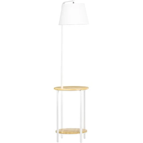 ● Lámpara de pie de estilo moderno con pantalla de tela y estructura de metal y estantes de bambú