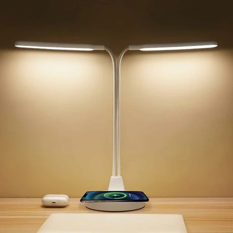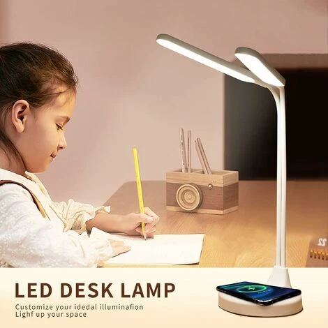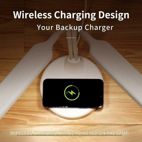 【Lámpara de mesa con función de carga inalámbrica】 nuestra lámpara de mesa aprovecha al máximo el espacio de la base, diseñada con una función de carga inalámbrica, cuando el cargador de su teléfono se daña o se pierde, puede realizar una carga de respaldo.
