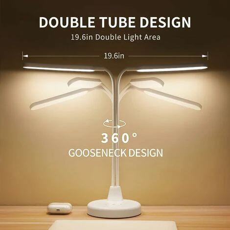 【Duplique el área de iluminación】 Nuestra lámpara de mesa está diseñada con tubos dobles, con una longitud máxima de 50 cm, el doble del área de iluminación de las lámparas de mesa ordinarias.