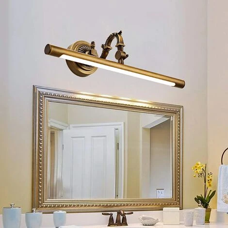 La luz del espejo adopta una fuente de luz de chip LED de alta calidad; Protección ocular, ahorro de energía, sin flash, vida útil de hasta 50.000 horas; Lámpara de baño vintage – con pantalla acrílica, fácil de limpiar, lámpara de baño de 45 cm Apta para iluminación de baño pequeño, se puede utilizar como iluminación de espejo, iluminación de armario, iluminación de baño, aplique