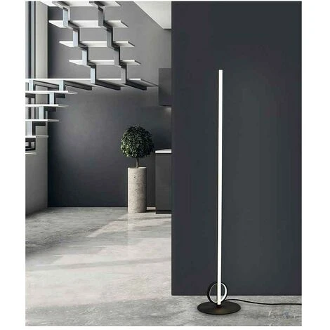 Pie de salon led modelo KITESURF realizada en metal acabado blanco con linea y circulo que desprenden iluminacion led de 24w, con un estilo moderno y minimalista, inspirado en la geometria, con formas rectas en perfecta combinacion con aros luminicos que crearan un ambiente moderno cargado de simplicidad y diseño.
