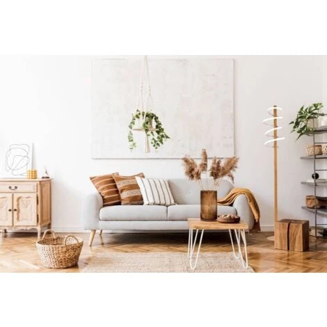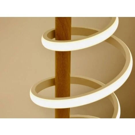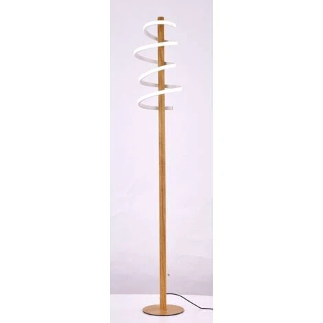 Lámpara de pie de diseño moderno y elegante. Con estructura de madera envuelta por una iluminación led blanca de 18W con una apertura del haz de luz de 360 grados.