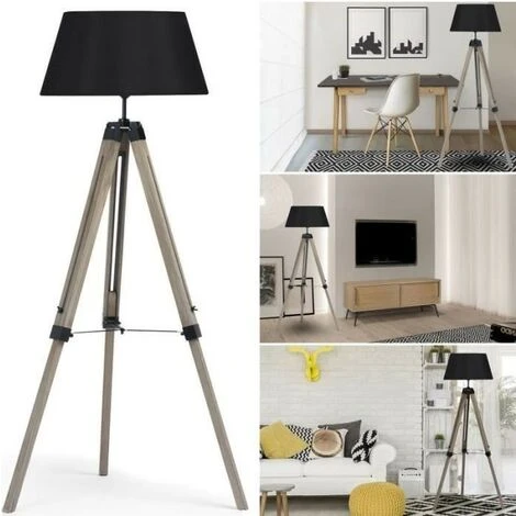 • La altura de esta lámpara de pie sobre trípode diseñada en madera de pino natural es regulable entre 71-114 cm