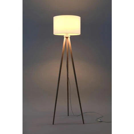 descripción Esta lámpara de pie de tres patas es una auténtica joya. Los colores brillantes le dan un aspecto elegante. Esta lámpara se puede integrar en casi cualquier estilo de vida y decoración. Gracias al enchufe E27 existente, tiene derecho a elegir la fuente de luz y, por lo tanto, la elección del color y la intensidad de la luz. La fuente de luz no está incluida en el volumen de suministro. Lámpara de detalles • Tipo de lámpara: lámpara de pie • Material: madera, PVC • Color: natural, blanco • Grado de protección: IP20 • Largo x ancho x alto en cm: 50 x 50 x 160 • Toma: 1x E27 • Bombillas incluidas: no • Bombillas de potencia: 1x máx. 60 vatios • Voltaje: 220 V, 50 Hz