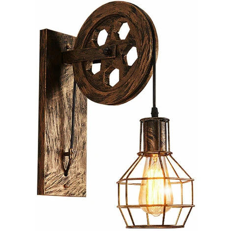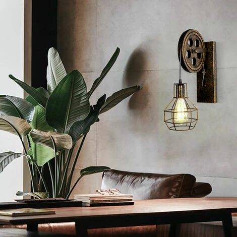 Lámpara de pared industrial retro polea, diseño creativo y simple, crea una atmósfera nostálgica, color clásico y apariencia única, hace que su hogar sea brillante y distintivo. Hecho de metal de alta calidad, resistente y duradero. Lugares de uso general: dormitorio, sala de estar , Cocina, comedor, pasillo, escalera, baño, oficina, etc.