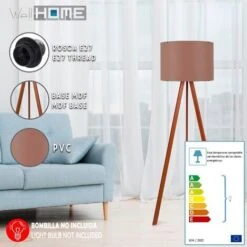 Lámpara De Pie Con 70% MDF / 30% PVC FABRIC Color Crema Roble