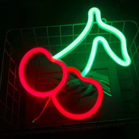 Adecuado para cualquier lugar: el letrero de luz de neón decorativo de fruta de cereza es perfecto como decoración para el hogar, arte de pared, bar, cafetería, tienda, dormitorio, hotel, apartamentos, decoraciones para fiestas. Regalos para familiares y amigos para