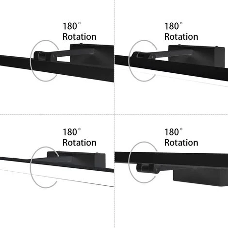 ROTACIÓN DE 180°: Esta lámpara de baño está especialmente diseñada para soportar una rotación de 180°. Puede ajustar la dirección de la luz según sus necesidades.