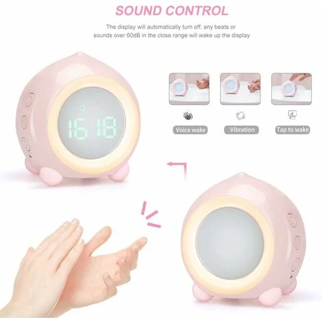 - Sound Wake Up: – El reloj despertador del dormitorio adopta un diseño de conservación de energía, la pantalla se apagará automáticamente en 40 segundos, puede despertarlo presionando el reloj o la mesa, aplaudiendo, etc. Si ha activado el control acústico, la luz blanca cálida nocturna estará encendida durante 40 segundos cuando despierte el reloj entre las 6:00 p. m. y las 7:00 a. m.