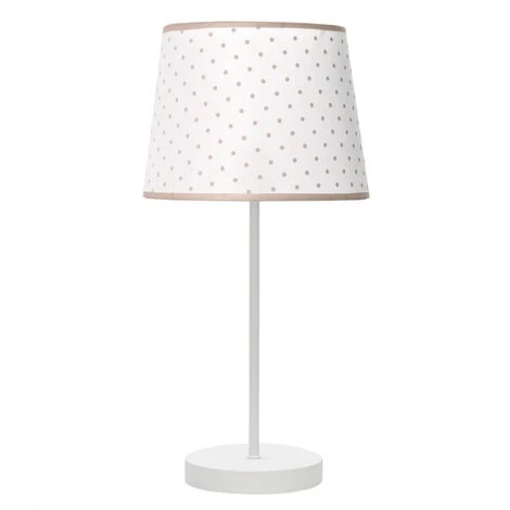 Lámpara de sobremesa de color piedra. Su portalámparas es E27.